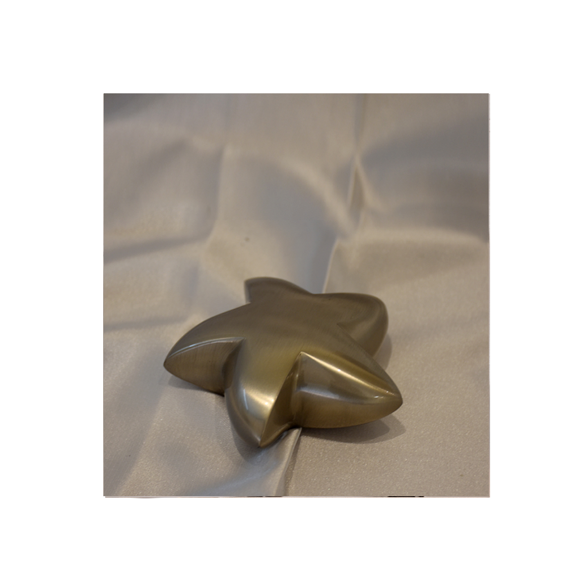 Urna per cani o gatti a forma di stella di colore argento.