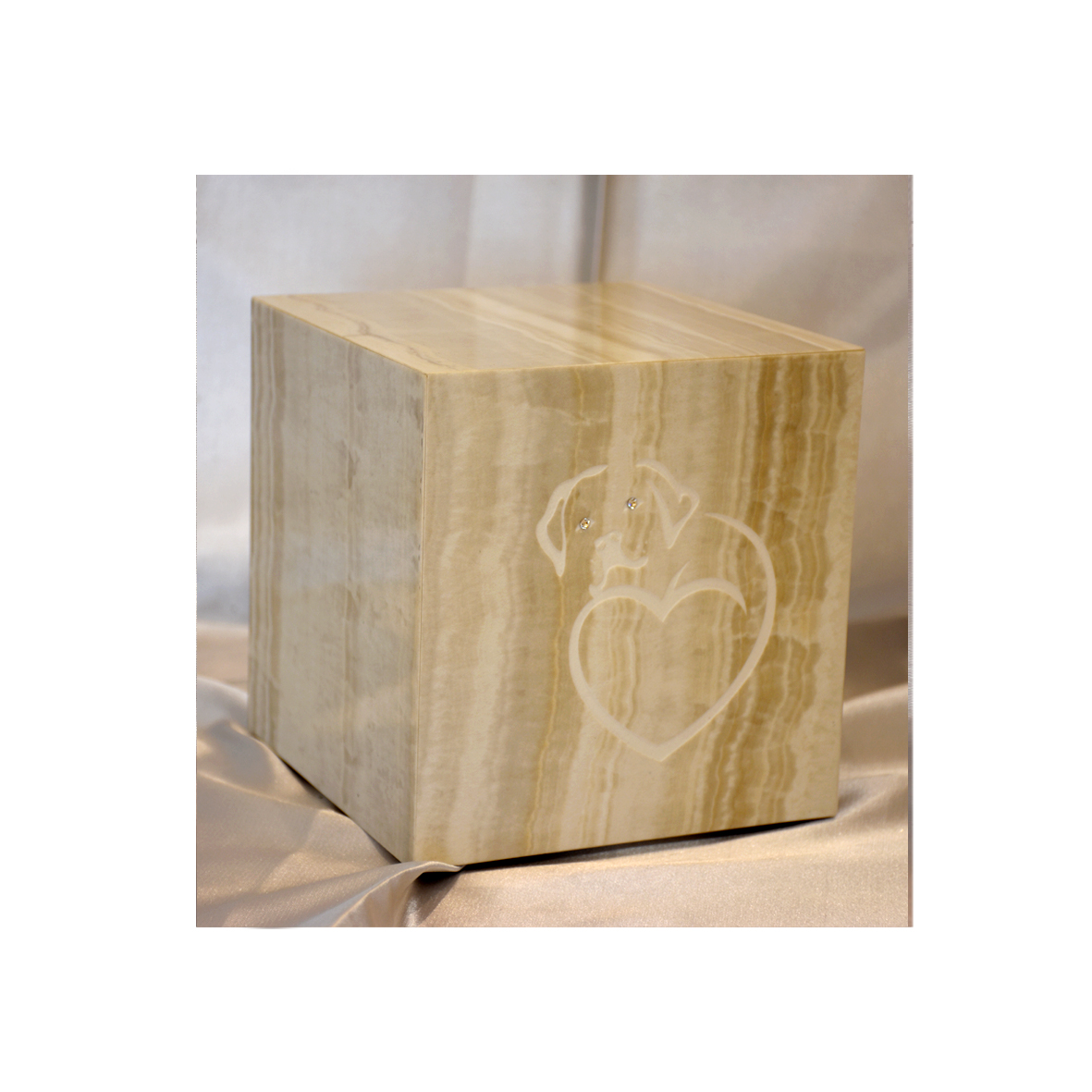 Urna gres a cubo con incisioni stilizzate, con swarovski.