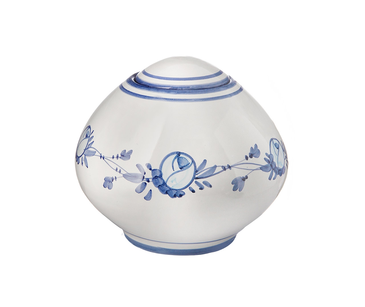 Urna in ceramica dipinta a mano con note floreali, può contenere le ceneri di taglia piccola versandole all’interno.