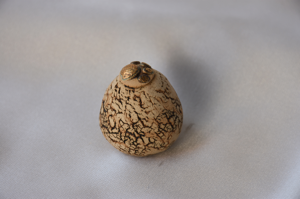 Urna di forma ovale in ceramica con dettaglio all’estremità della punta, in rilievo una zampa colore oro.